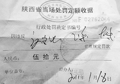陜西秦東交警被曝衣裝不整 罰款單像“天書”(圖)