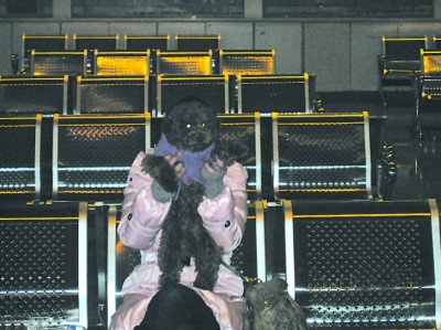 見有人拍照,女乘客用小狗擋著自己。資料圖片