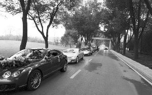 “主要是看車,實在是太騷包了。邁凱輪SLR,LP640,LP560,599GTB,R8,911T,GTS,F(xiàn)430,430SC,C63 AMG,TARGA4……空前絕后,2009年武漢那場超跑婚禮簡直是小兒科。”去年2月25日,在無錫知名的“東林書院”論壇上,網(wǎng)友“wx_zc”上傳了一組一個月前在無錫舉辦的一場婚禮照片,從上傳的照片看,婚車車隊的豪華程度令人咂舌。