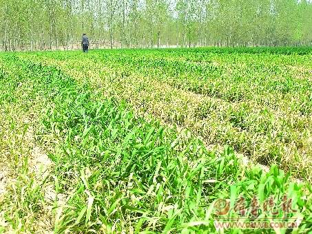 在莘縣董杜莊鎮(zhèn),澆過污水的小麥漸漸變黃死掉。 本報(bào)記者 劉彥朋 攝