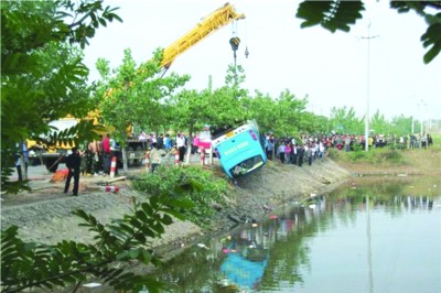 客車墜入水塘致7人溺亡 男子孤身下水救起6人(圖)