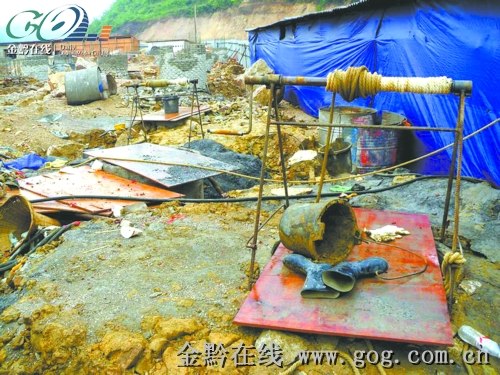 5月10日上午11時許,一名工人正在貴陽市某工地上人工挖孔樁時,突然被相距約3米、正在澆筑混凝土的孔樁竄流進混凝土,被掩埋深約6米的男子在7個小時后被挖到時已死亡。