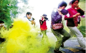 與此同時,杭州其余7個城區的7個街道、江南實驗學校等65所中小學校和20個人防重點鎮也在開展防空防災應急疏散防護演練。這是杭州市連續第10年舉行大規模的防護演練,也是歷年來規模最大的一次,共有約47500人參加了演習。