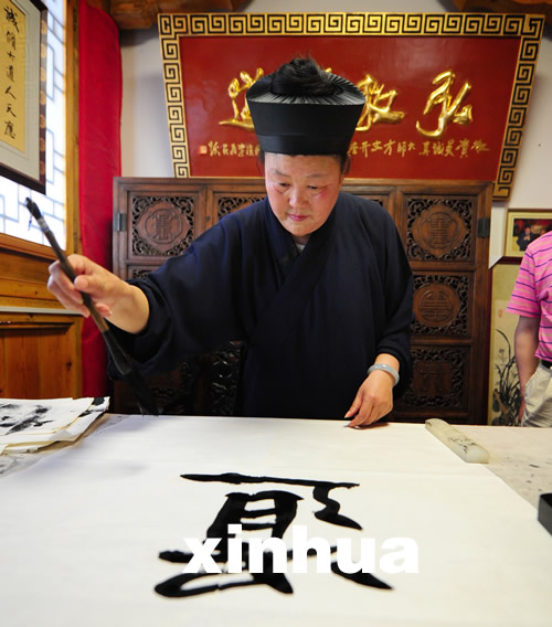 吳誠真方丈在練習書法(5月9日攝)。新華社記者 程敏 攝