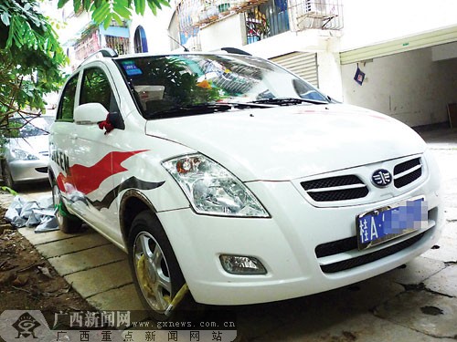 為防車被偷偷開走,梁先生給小車上了鎖鏈。