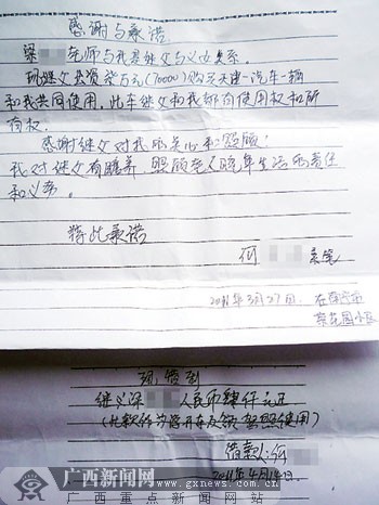 何某索要購車款時立下的“感謝與承諾”。