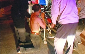 面對眾人幫忙救助墜樓妻子,侯某多次向眾人下跪感謝。李海勇 攝