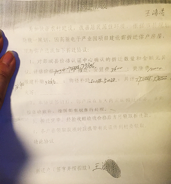 青山村村支書胡宗明告訴澎湃新聞,村中確實正在拆遷,王永利與王永明的房屋拆遷補償款均已付清,由王永利的兒子王海濤領走。王永利投訴的被拆沒獲得補償款的,是其多年前倒塌的老房。