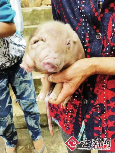 云南一母豬產下雙頭四眼豬崽 兩嘴都能吃喝(圖)