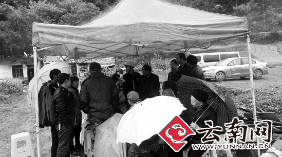 記者看到,死者尸體蓋著防雨塑料布,懸掛于枝繁葉茂的漆樹上。