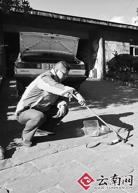 “蛇,有毒蛇,麻煩你們森林公安前來處理。”24日中午12時,位于昆明市嵩明縣軍馬場職教基地的一學(xué)院保衛(wèi)處干部打來電話求助。