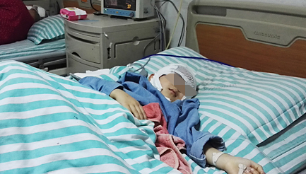 遼沈晚報11月30日報道,5歲的方方(化名)總說姥爺好,可怎么也想不到,睡夢中的她被姥爺錘暈,右眉骨粉碎性骨折,頭骨開裂。與方方一起受傷的還有她的媽媽,頭部被父親打傷5處。對女兒、外孫女下狠手,這得多大的仇恨?而記者調查發現,事發原因不過是家庭瑣事。圖為病床上的方方。