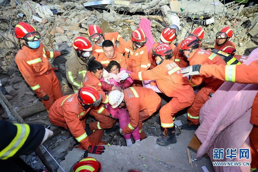 2月3日清晨,在浙江溫州文成民房倒塌事故現(xiàn)場(chǎng),救援人員救出第二名幸存者。