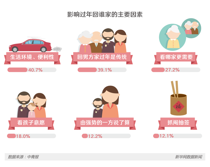 雖然在傳統觀念中“女方回婆家過年”是“天經地義”,但隨著獨生子女夫妻群體的壯大以及社會觀念的改變,越來越多的女性不愿再墨守成規。而要想在為期一周左右的春節做到婆家娘家兼顧,對于絕大多數夫妻來說,幾乎是不可能的。可以說“回誰家過年”的確已上升為一個普遍性的問題。