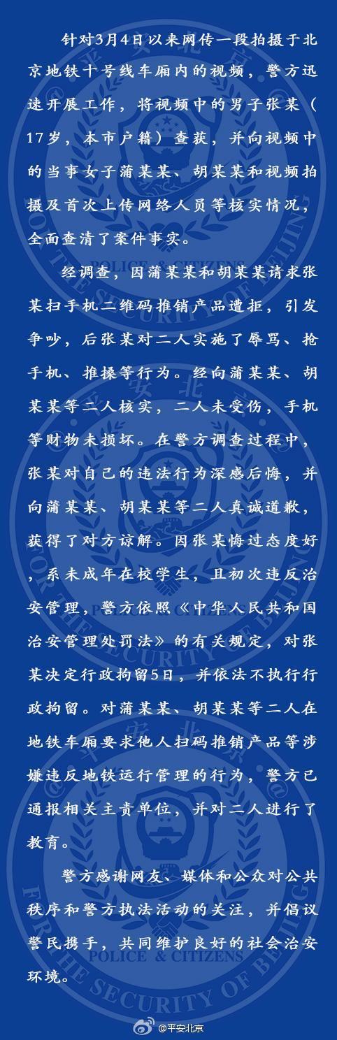 北京地鐵男子辱罵兩名女子 依法不執行行政拘留