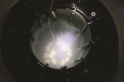 醫(yī)生將已“沉睡”3年的冷凍胚胎從零下196℃的液氮中取出。 劉威 攝
