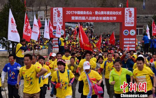 今年杏花節,不僅看十里杏花,還能登大山名川。中國健身名山登山賽當天同期開幕,近千名登山愛好者齊聚一堂。八達嶺古長城被授予“中國健身名山”牌匾。