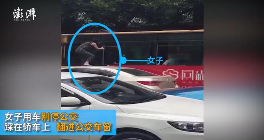 女司機壓線超車起爭執 從車頂爬車窗掌摑公交司機
