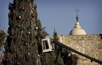 巴以和談氛圍和諧 伯利恒四層樓高圣誕樹迎圣誕