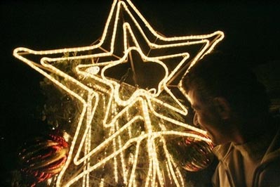 中新網12月16日電 伯利恒當地時間12月15日,巴勒斯坦居民點亮了一顆四層樓高的圣誕樹,開啟了巴以和平進程陷入僵局7年以來最熱鬧的圣誕節慶祝。據美聯社報道,伯利恒當地官員表示,由于近期巴以重啟和談進程,西岸地區氣氛空前和諧,今年前往伯利恒的朝圣者和游客人數可能達到七年最高峰。