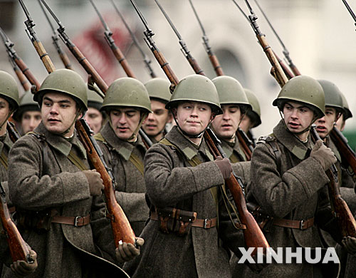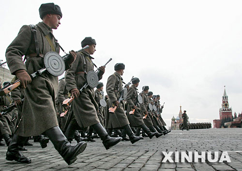 2006年11月7日,俄羅斯士兵在莫斯科紅場參加閱兵儀式,紀念1941年11月7日的紅場閱兵式舉行65周年。 新華社發