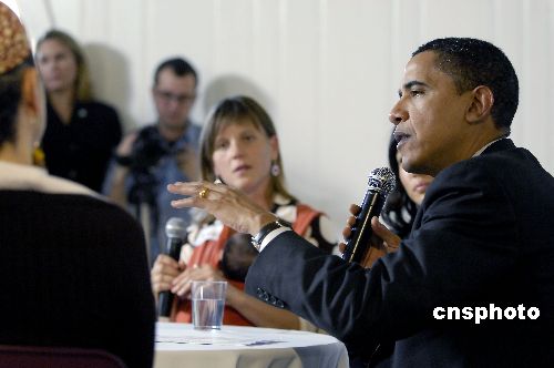 一月十七日,美國總統參選人奧巴馬在舊金山與四位不同族裔的年輕單身母親談健保和稅務政策,爭取選票。(資料圖 ) 中新社發 陳鋼 攝