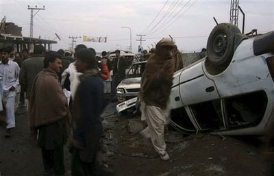 2月16日巴基斯坦自殺式炸彈襲擊事件現場。