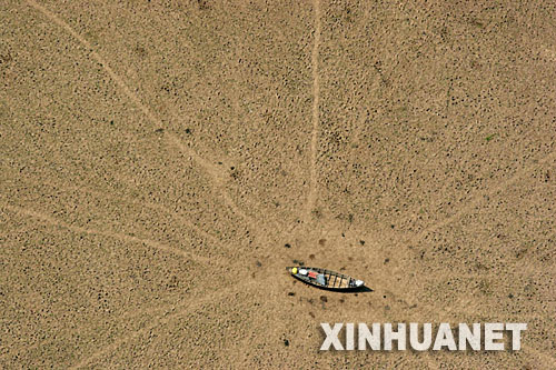 這張拍攝于2005年10月26日的照片顯示,一艘小船擱淺在巴西庫魯阿伊湖干涸的湖床上。 新華社發