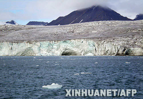 資料圖片:這是位于北極附近的挪威斯瓦爾巴群島的一條冰川(2007年8月23日攝)。自1966年以來,這條冰川已縮減了3.5公里。研究表明,北極地區氣候變暖的速度是地球其他地區氣候變暖速度的兩倍,這對北極地區的生態系統構成了嚴重威脅。 新華社/法新