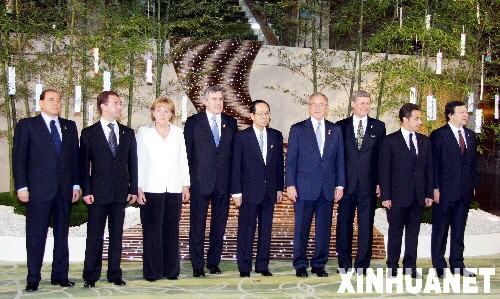 7月7日,在日本北海道洞爺湖,參加八國(guó)集團(tuán)首腦會(huì)議的領(lǐng)導(dǎo)人在竹子裝飾前合影,從左至右依次為意大利總理貝盧斯科尼、俄羅斯總統(tǒng)梅德韋杰夫、德國(guó)總理默克爾、英國(guó)首相布朗、日本首相福田康夫、美國(guó)總統(tǒng)布什、加拿大總理哈珀、法國(guó)總統(tǒng)薩科齊和歐盟委員會(huì)主席巴羅佐。 新華社發(fā)