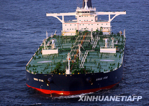 11月19日,被海盜劫持的沙特阿拉伯“天狼星”號巨型油輪停在索馬里東北部海面上。聯(lián)合國秘書長潘基文當日通過發(fā)言人發(fā)表聲明,對索馬里附近海域日益猖獗的海盜活動表示關注,呼吁國際社會協(xié)調一致,加大打擊力度。新華社/法新