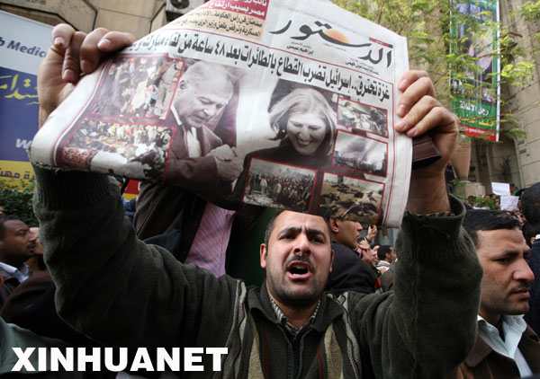 12月28日,埃及民眾在開羅舉行集會,抗議以色列空襲加沙地帶,聲援加沙民眾。以色列空軍27日開始對加沙地帶多處地點進行空襲,目前已造成至少271人死亡、900多人受傷,其中120人傷勢嚴重。新華社發(fā)(納賽爾攝)