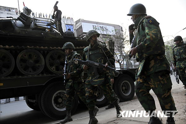 孟加拉國政府官員當日說,該國準軍事組織孟加拉國步槍隊發動叛亂者已放下武器。孟武裝警察和快速行動營已進入位于首都達卡的步槍隊總部。新華社發(扎曼攝)
