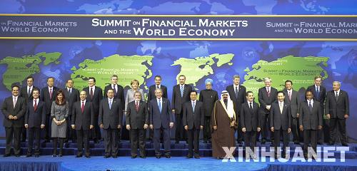 2008年11月15日,中國國家主席胡錦濤在華盛頓出席二十國集團(tuán)領(lǐng)導(dǎo)人金融市場和世界經(jīng)濟(jì)峰會(huì)。這是與會(huì)各國領(lǐng)導(dǎo)人及有關(guān)國際組織負(fù)責(zé)人集體合影。新華社記者 李學(xué)仁 攝