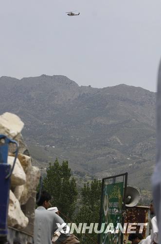 這張4月27日在巴基斯坦迪爾地區(qū)拍攝的照片顯示,巴基斯坦軍方一架參加打擊行動的直升飛機(jī)從空中飛過。巴基斯坦內(nèi)政部長馬利克28日說,軍方已經(jīng)在西北邊境省迪爾地區(qū)的行動中打死70名武裝分子。軍方26日開始打擊行動, 目前行動仍在繼續(xù)。新華社發(fā)