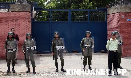 6月28日,伊朗法爾斯通訊社報道說,伊朗安全部門已經逮捕了8名與伊朗總統選舉后騷亂有關的英國駐伊朗大使館當地雇員。這是伊朗防暴警察在德黑蘭的英國駐伊朗大使館門外警戒的資料照片(2009年6月15日攝)。 新華社/法新