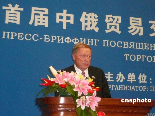 2007年九月三十日,前俄羅斯駐華大使羅高壽在北京出席中國吉林首屆中俄貿易交易會新聞發布會并致辭。 中新社發 董會峰 攝