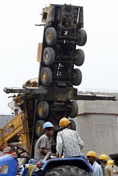 中新網7月14日電 綜合外電報道,7月13日,在印度首都新德里高架橋坍塌事故清理現場,有至少3臺起重機倒塌,造成至少4人受傷。