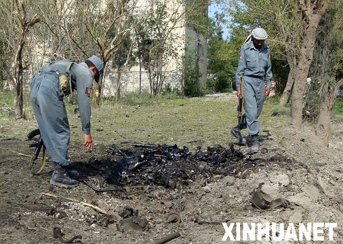 7月25日,在阿富汗東部霍斯特市,警察查看自殺式爆炸襲擊現場。阿富汗官方當日證實,7名塔利班自殺式襲擊者當天針對阿東部霍斯特市的多處政府辦公樓發動爆炸襲擊,并與阿安全部隊展開交火,造成多人死傷。新華社發