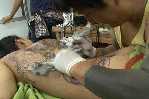 一位紋身師說:“在年輕的女大學生身上紋巨大的龍紋身不是很少見嘛。今天為了迎接特別的儀式特地進行了一次這樣的活動!