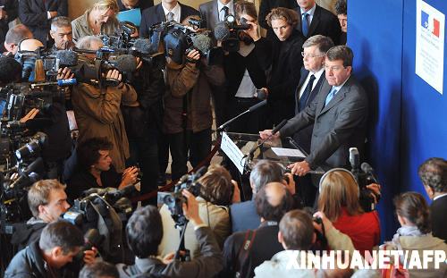 9月15日,在法國巴黎,法國電信董事會主席兼首席執行官迪迪埃·隆巴德(右二)和法國勞工部長格扎維埃·達爾科舉行聯合新聞發布會。迪迪埃·隆巴德當天表示,將盡全力阻止員工自殺事件再次發生。歐洲第三大電信運營商法國電信公司一名女員工14日自殺未遂。去年2月至今,這家企業已有23名員工自殺身亡,引起政府部門和工會組織高度關注。法國政府已責成相關監管部門每月匯報事態進展。新華社/法新
