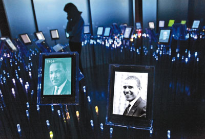 奧巴馬還未領(lǐng)獎,其照片已進駐諾貝爾和平中心,與已故得主馬丁·路德金的照片并排。