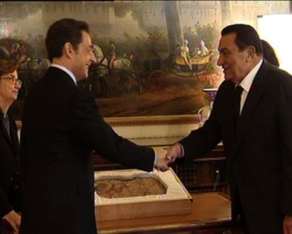 法國總統薩科齊向到訪的埃及總統穆巴拉克歸還埃及石碑文物