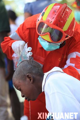 1月14日,中國國際救援隊的醫務人員在海地首都太子港為傷員進行治療。當日,中國國際救援隊的醫護人員來到海地總理府前的廣場,為在這里避難的群眾進行診療,開展醫療救助。加勒比島國海地當地時間12日下午發生里氏7.3級強烈地震,首都太子港大量房屋倒塌,交通通訊中斷,人員傷亡情況至今難以統計,海地領導人估計死亡人數可能超過數萬人。新華社記者邢廣利攝