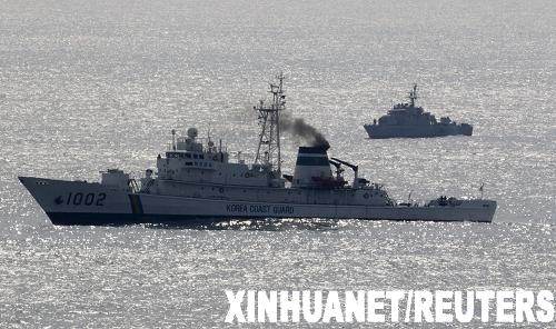 3月27日,一艘韓國軍艦(前)與一艘韓國海事警察巡邏船在朝鮮半島西部海域執(zhí)行搜救任務。韓國YTN電視臺27日援引總統(tǒng)府青瓦臺消息人士的話報道說,26日晚沉沒的韓國海軍“天安”號警戒艦很可能是因遭遇水雷而發(fā)生爆炸,爆炸產(chǎn)生的破洞最終導致警戒艦沉沒。新華社/路透
