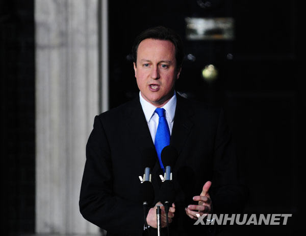 5月11日,在英國倫敦,保守黨領袖卡梅倫在唐寧街10號首相官邸前發(fā)表講話。卡梅倫當晚接任首相職務,他應女王伊麗莎白二世的要求著手組建新一屆政府。新華社記者曾毅攝