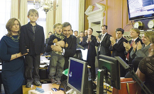 布朗離開唐寧街10號之前,與家人及助手合影留念。