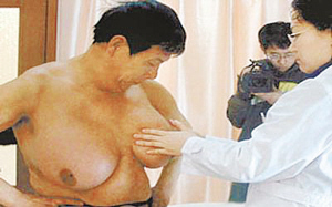醫(yī)生在檢查霍凡畸形發(fā)育的乳房。
