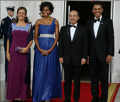 在宴會上,奧巴馬與卡爾德龍為兩國友誼互相祝酒。此次國宴,奧巴馬夫婦再次邀請了他們喜歡的高級廚師里克·貝雷斯準備菜肴。