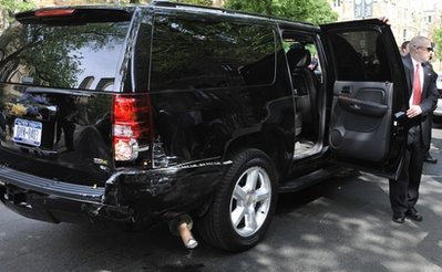 克林頓乘坐車輛被撞 車后方受損無人受傷(圖)